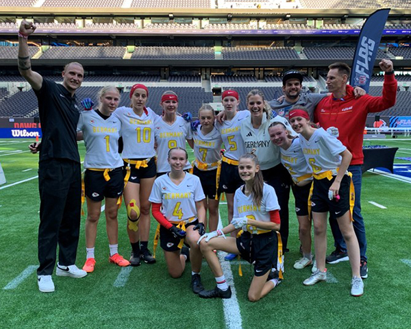 Unsere U15-Flag-Football-Mädchenmannschaft hat bei der Europameisterschaft in London einen unglaublichen Erfolg gefeiert: Sie sind Vize-Europameisterinnen! Gespielt wurde im beeindruckenden Tottenham Hotspur Stadium – ein echtes Highlight und ein Erlebnis, das sicher niemand so schnell vergisst.